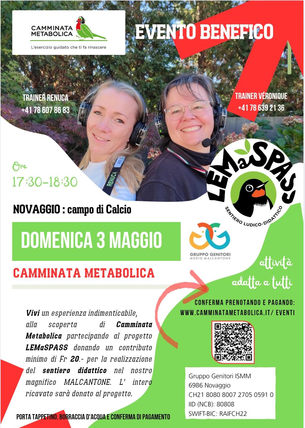 Il gruppo genitori dell’Istituto scolastico di Lema invita a partecipare alla camminata metabolica del 3 maggio 2026.